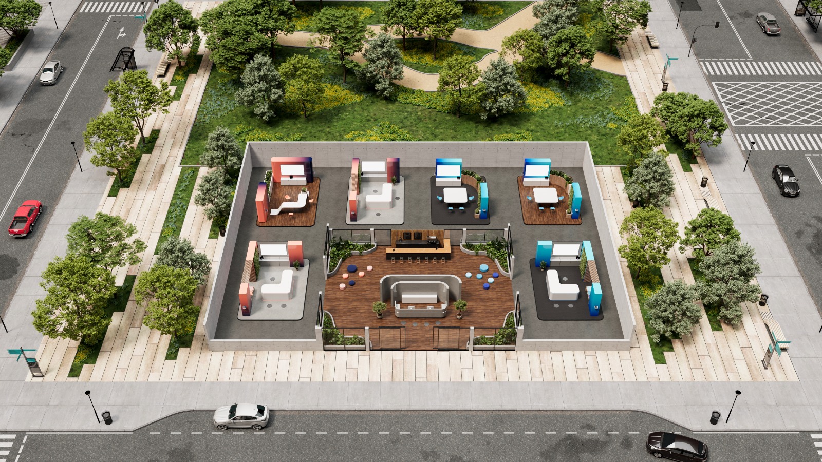 Para este proyecto desarrollamos una serie de imágenes tipo planta abierta isométrica, similares a entornos virtuales de simulación, que permiten visualizar y recorrer las oficinas de forma intuitiva. La propuesta incluye sectores de trabajo, recepción, cafetería y salas de reuniones, con la posibilidad de desplazarse virtualmente por los distintos espacios. El objetivo fue representar un entorno corporativo digital, accesible desde cualquier dispositivo, ideal para encuentros virtuales, presentaciones o visitas guiadas en línea.